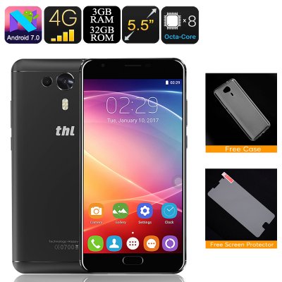 ثل نايت 1 الروبوت الهاتف - 4G، ثماني النواة وحدة المعالجة المركزية، 3GB رام، ماسحة بصمات الأصابع، الروبوت 7.0، كاميرا خلفية مزدوجة، 4G سيم، وتغ (أسود)