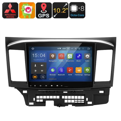 2 الدين ستيريو سيارة ميتسوبيشي لانسر - الروبوت 6.0، الثماني النواة بو، 2 جيجابايت رام، غس، 10.2 بوصة العرض، واي فاي، جوجل اللعب، بلوتوث
