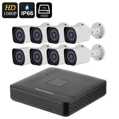 8 قناة كامل هد أهد دفر نظام - 1 / 2.7 كموس، 1080p القرار، 20 متر للرؤية الليلية، ip66 للماء، 5 وسائط تسجيل، 1 تيرا بايت هد