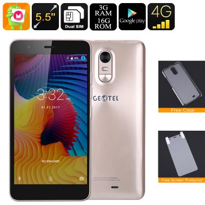 الروبوت الذكي Geotel ملاحظة - 5.5 بوصة عرض، ثنائي IMEI أو Google Play 4G، الروبوت 6.0 رباعية النواة وحدة المعالجة المركزية، 3GB RAM (الذهب)