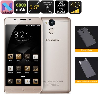هك مستودع بلاكفيو P2 لايت الروبوت الهاتف - الثماني النواة بو، 4G، بطارية 6000mAh، 3GB رام، ماسحة بصمات الأصابع (الذهب)