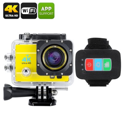 Q3H Waterproof 4K Sports Camera - Wi-Fi, 16MP, 170 Degree Wide Angle, 4X Digital Zoom, 2 Inch LCS Screen (Yellow)