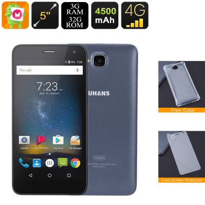 الروبوت الذكي Uhans H5000 - الروبوت 6.0، 4G، ثنائي IMEI، رباعية النواة وحدة المعالجة المركزية، 3GB RAM، 4500mAh، 5 بوصة IPS العرض، 720P (أسود)